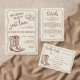 Simple rustic hand-drawn western style "nothing fancy just love" wedding design with rope frame, cowboy boots, and a champagne flute, for a casual wedding or elopement celebration.