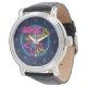Uhr, Vintage Männeruhr mit schwarzem Lederarmband