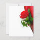 Ein auffälliges Bild einer rote Rose, die sanft auf einer rot-weißen Oberfläche mit weichen grünen Blätter und weißen Blumenakzenten liegt. Dieses Foto mit viel Negativraum eignet sich ideal als Hintergrund für personalisierte Botschaften, Feierlichkeiten, digitale Entwürfe oder Wandkunst und eignet sich für romantische, festliche oder denkmalgeschützte Themen.