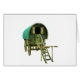 Fotografie eines traditionellen Sinti und Roma-Bowtop-Wohnwagens, bemalt überdacht Waggon, auf der Appleby Pferdemesse, Cumbria. England, wo sich jedes Jahr Sinti und Roma treffen.
