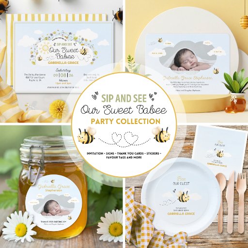 A sweet bee-inspired birth announcement card designed to coordinate beautifully with our bee theme sip and see party collection.