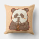 Cute retro panda sipping boba with “Sip Happens” quote — perfect cozy throw pillow for boba and panda lovers.