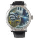 Uhr, Vintage Männeruhr mit schwarzem Lederarmband