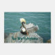 Nachdem ein erfolgreiches Mittagessentauchen in das Wasser nahe dem Ozeanende des Kanals des Schiffs, Erholungen eines Pelikans auf einem Anlegestellenfelsen als der Frühlingsseebrise hilft, seine Federn zu trocknen. Am Hafen Canaveral, Florida.