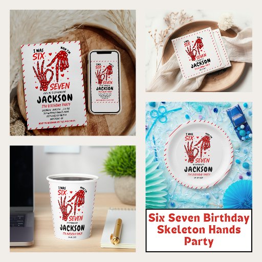 Six Seven Birthday Skeleton Hands Party Einladung