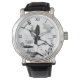Uhr, Vintage Männeruhr mit schwarzem Lederarmband