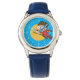 Kinderuhr aus Edelstahl mit blauem Lederarmband