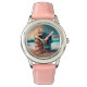 Kinderuhr aus Edelstahl mit rosa Lederarmband
