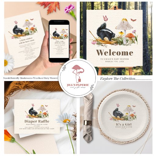 Skunk Butterfly Mushrooms Woodland Baby ShowerDesignt von Jill P.