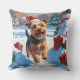Skye Terrier läuft im Schnee mit Weihnachtsmütze Kissen