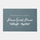 Zuhause süße Zuhause-Türmatte in Schieferblau personalisiert mit Ihrem Nachnamen und dem Jahr, in dem Ihre Familie oder Zuhause gegründet wurde. Schieferblaue Türmatte mit Zuhause Sweet Zuhause in weißer Kalligraphie und Ihr Name in eleganten Buchstaben über Grün in Weiß.