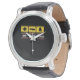 Uhr, Vintage Männeruhr mit schwarzem Lederarmband