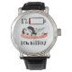 Uhr, Vintage Männeruhr mit schwarzem Lederarmband