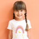 Dieses Design zeichnet sich durch einen niedlichen Regenbogen in Pastelltönen von Rosa und lila. Der Halbmond und das Sternenelement verleihen dem Ganzen einen Farbspritz und ein ätherisches Ambiente, ideal als Modehemd oder als Schlafanzug.