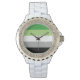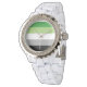 Eine wunderbare Damenuhr mit weißem Armband und grün-weiß-kariertem Ziffernblatt. Trägt sich ganz fabelhaft. Exzellenter Druck, sehr klare Farben. Schönes Design.