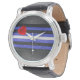 SlipperyJoe's Lederstolperflagge schwarz königsbla Armbanduhr