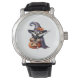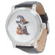 Uhr, Vintage Männeruhr mit schwarzem Lederarmband