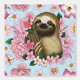 Ein niedliches Faultier mit rosa Blume in blauer Umgebung
