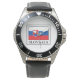 Herrenuhr aus Edelstahl mit schwarzem Lederarmband