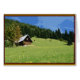 Foto von einer Hütte und einem Feld von Blume in der Landschaft nahe Bohinj, Slowenien. Foto wird durch einen Fotoshop-Filter übergeben, um ihm die Wirkung eines Siebdrucks zu verleihen.