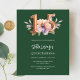 Eine moderne, stilvolle und glamouröse Einladung für eine Quinceañera. Ein smaragdgrüner Hintergrund mit rosa und pfirsichfarbener Blume. Der Name ist mit einem modernen, grünen Handschrift geschrieben. Personalisieren Sie Ihre Party-Daten und fügen Sie sie hinzu. Nummer 15 wird mit einem Schriftart im Ballonstil geschrieben, Skript. 1 Blatt = 1 Einladung mit Druckkante bis Kante.