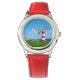 Kinderuhr aus Edelstahl mit rotem Lederarmband