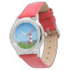 Uhr, Kinderuhr aus Edelstahl mit rosa Lederarmband