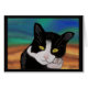 Grafische Illustration des Smokings die Katze, die gegen den dunkelgrünen und orange Horizont sich entspannt.