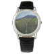 Uhr, Vintage Männeruhr mit schwarzem Lederarmband