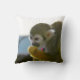 Eichhörnchenaffe, der auf einem Imbiss kaut.
