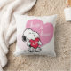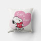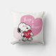 Valentinstag der Erdnüsse | Karo aus Snoopy hält an einem roten Herz, mit rosa Herzen im Hintergrund, die lautet: "Umarmungen & Küsse".