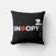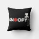 Snoopy entspannt sich gegen einen Felsen auf der Spitze seines Namens in Englisch und Japanisch.