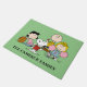 Karo aus Snoopy, während Lucy den Fußball in Position hält, Sally jubelt, und Charlie Brown bewundert seine Pfeife.