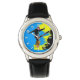 Kinder Edelstahluhr mit schwarzem Lederarmband