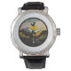 Uhr, Vintage Männeruhr mit schwarzem Lederarmband