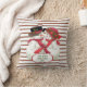 Dieses bezaubernde Design zeichnet sich durch einen Vintagen Stil aus, Schneemann und Schneefrau tragen rote Schals und Ferienhüte. Der Hintergrund besteht aus roten und weißen, kantigen Streifen und kann individuell gestaltet werden. Der Text unten lautet "UNSERE ERSTEN CHRISTMAS - 20XX" und kann personalisiert werden. Dieses Design ist auf beiden Seiten des Kissens.