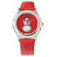 Snowman in einem Top Hat, die Uhrenhänder sind seine Arme. Der Kinderstil. Hintergrundfarbe anpassbar. Ich habe rot verwendet, aber Sie können die Hintergrundfarbe bearbeiten, wie Sie möchten.