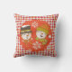 Snowmen Couple Dots und Raute Ferienkissen, so hübsch und farbenfroh, mit einem hellrosa, weiß, orange und rot Raute Hintergrund mit einem orangefarbenen Kreis mit weißen Punkten und jeder Seite hat ein lächelndes Schneepaar mit Hut, Schal, Karottennase und Schneeflocken!