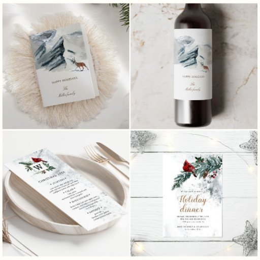 Unsere Kollektion "Snow Mountains Holiday" bietet staubige, graue Berge und Waldtiere, gepaart mit personalisierten Fotos und eleganten Schriftart für Ihre Informationen. Karo in unserem Shop für passende Artikel aus dieser Kollektion.