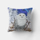 Snowy Owl in Snow Dark Blue Sky Kissen