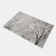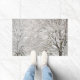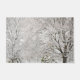 Das Design zeigt ein Foto von schneebedeckten Bäumen im Wald.