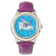 Uhr, Kinderuhr aus Edelstahluhr mit lila Lederarmband