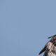 Ein graziöser roter Drachen auf hellblauem Hintergrund. Sie können die Hintergrundfarbe ändern. Der rote Drachen (Milvus milvus) wurde vom nationalen Aussterben im Vereinigten Königreich gerettet und wurde wieder in England und Schottland eingeführt.