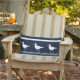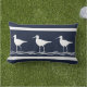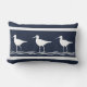 Kissen im Freien : Teil der nautischen Dekoration der weichen Marine mit weißen Sand Pipers auf einer Seite und Marine auf der Rückseite.Wassersport-Design perfekt für Küsten-Wohnen, Seedekoration, Flussdekoration und mehr.. Design von Sandy Closs.