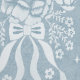 A serene, hand-drawn rococo pattern featuring carousel horses and florals in soft blue and white. The intricate plaster texture and symmetrical layout create an elegant, vintage-inspired look with a timeless storybook feel.