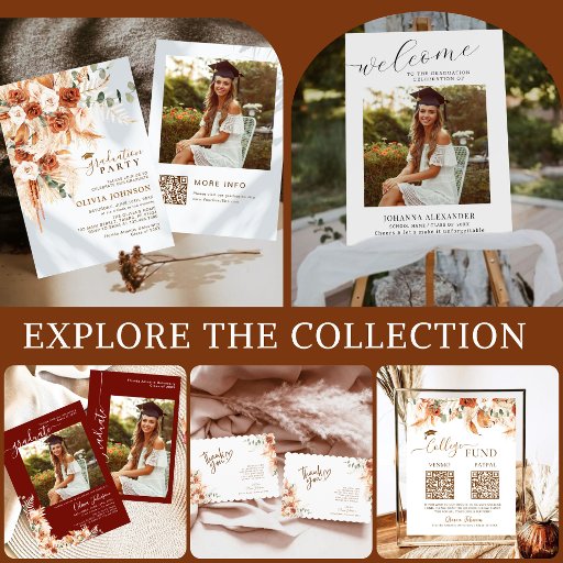 Feiern Sie Ihren Meilenstein mit dieser Soft Sand Modern Foto Graduation Party Ankündigung mit einem personalisierten Foto, eleganten Schriften und botanischen Terracotta Pampas Akzente. Dieses elegante und stilvolle Design verbindet schicken Charme mit zeitgenössischer Eleganz und schafft so einen zeitlosen Sake. Egal, ob Sie sich an Freunde und Familie wenden oder die spannenden Neuigkeiten teilen: Diese blumeninspiriert Ankündigung fügt Ihrer Feier eine einzigartige, raffinierte Touch hinzu