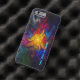 Ein leicht psychedelisches, welliges, wirbelndes, mehrfarbiges Fraktal, das den elektromagnetischen Emissionen der Sonne ähnelt. Das Bild wird auf einem sternförmigen Hintergrund überlagert. Fügen Sie Ihren eigenen Text hinzu.