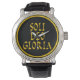 Uhr, Vintage Männeruhr mit schwarzem Lederarmband