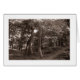Eine Karte mit einem stimmungsvollen Schwarz-Weiß-Foto im Wald von Bute Park, Cardiff, Wales.