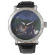 Uhr, Vintage Männeruhr mit schwarzem Lederarmband